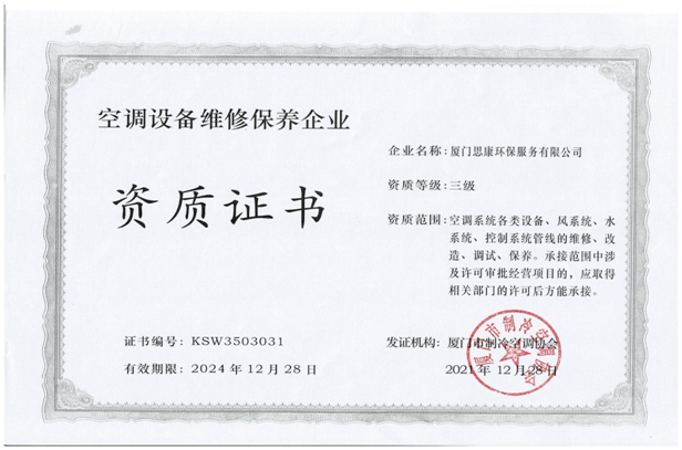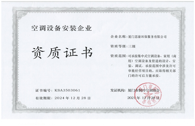 制冷設(shè)備清洗安裝三級資質(zhì)證書