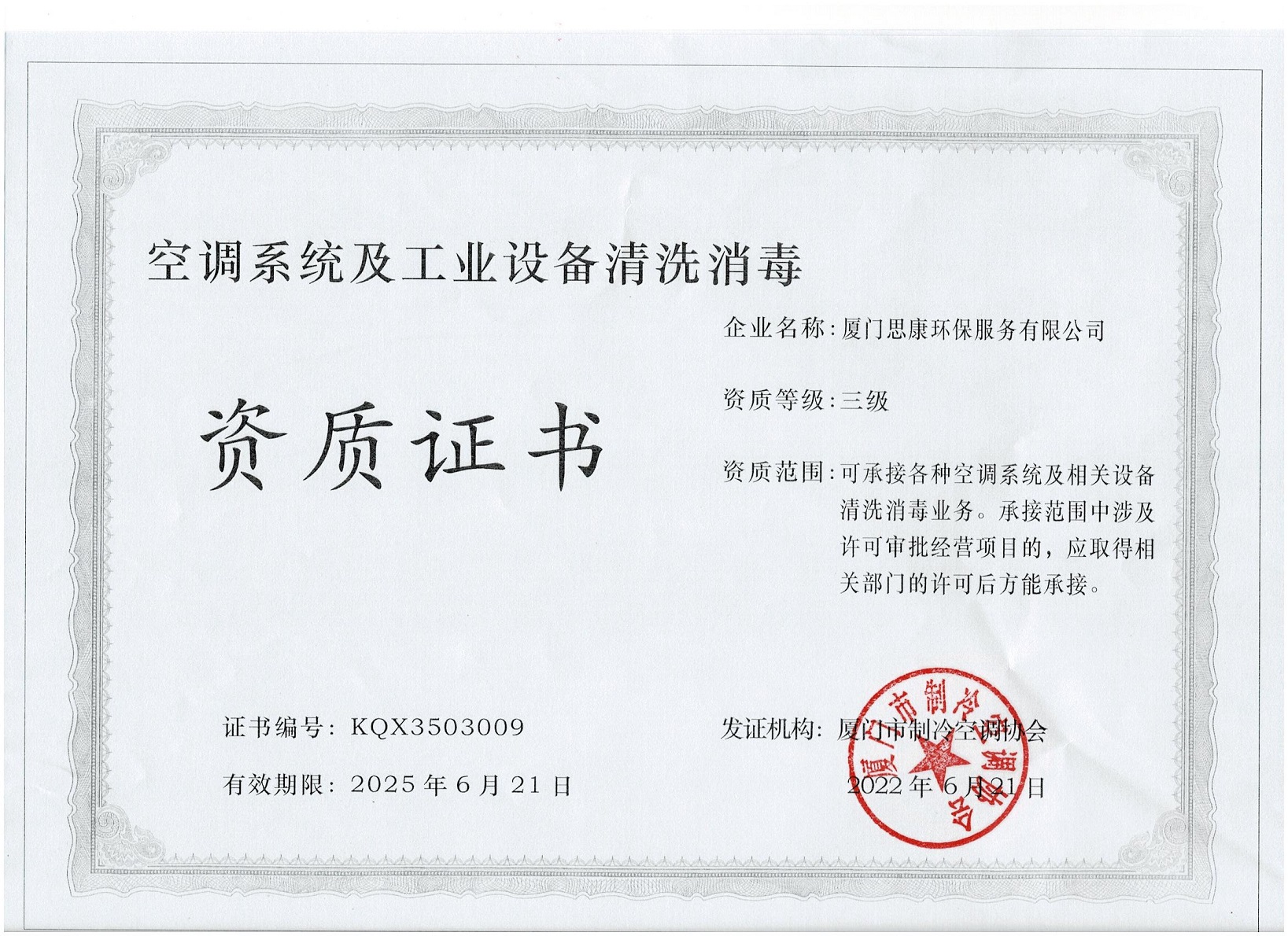 空調(diào)系統(tǒng)及工業(yè)設(shè)備清洗消毒三級資質(zhì)