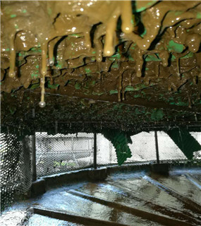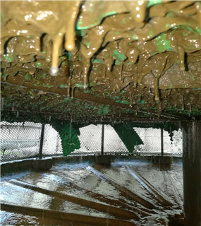 冷卻水系統(tǒng)中細(xì)菌、真菌及藻類在光合作用下生長繁殖,其分泌物粘合懸浮物形成粘泥,粘附管壁、填料、引起故障。